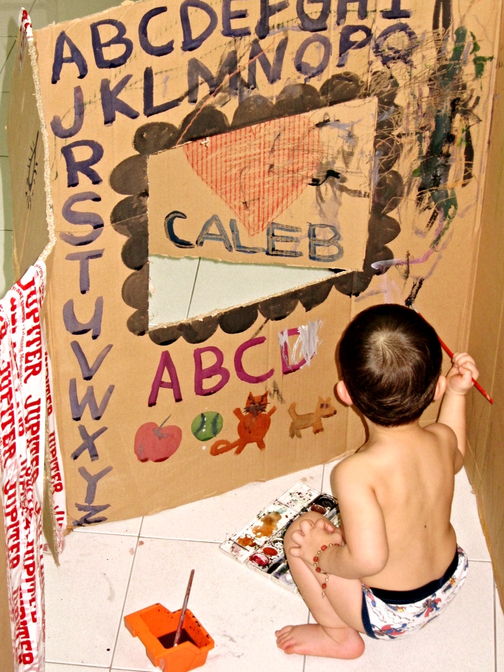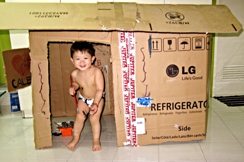 I know it doesn’t look fantastic. But Caleb had so much fun painting it and pretending to live in it. We kept the house for a month before throwing it away.