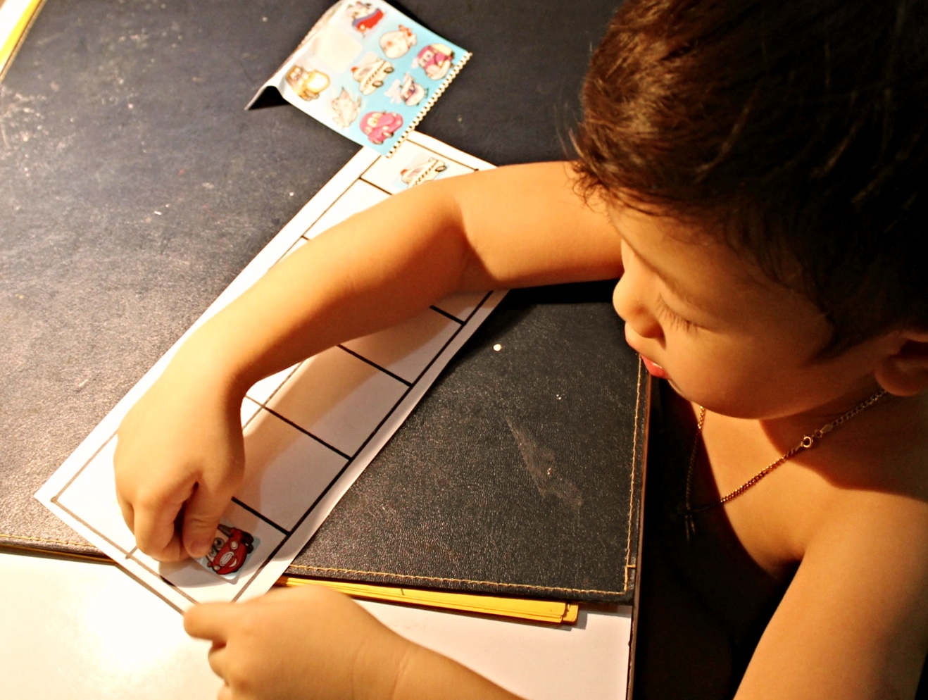 Sorry for the semi-naked pictures but it was actually time for his bath when he saw the stickers on the table and couldn’t resist doing it.