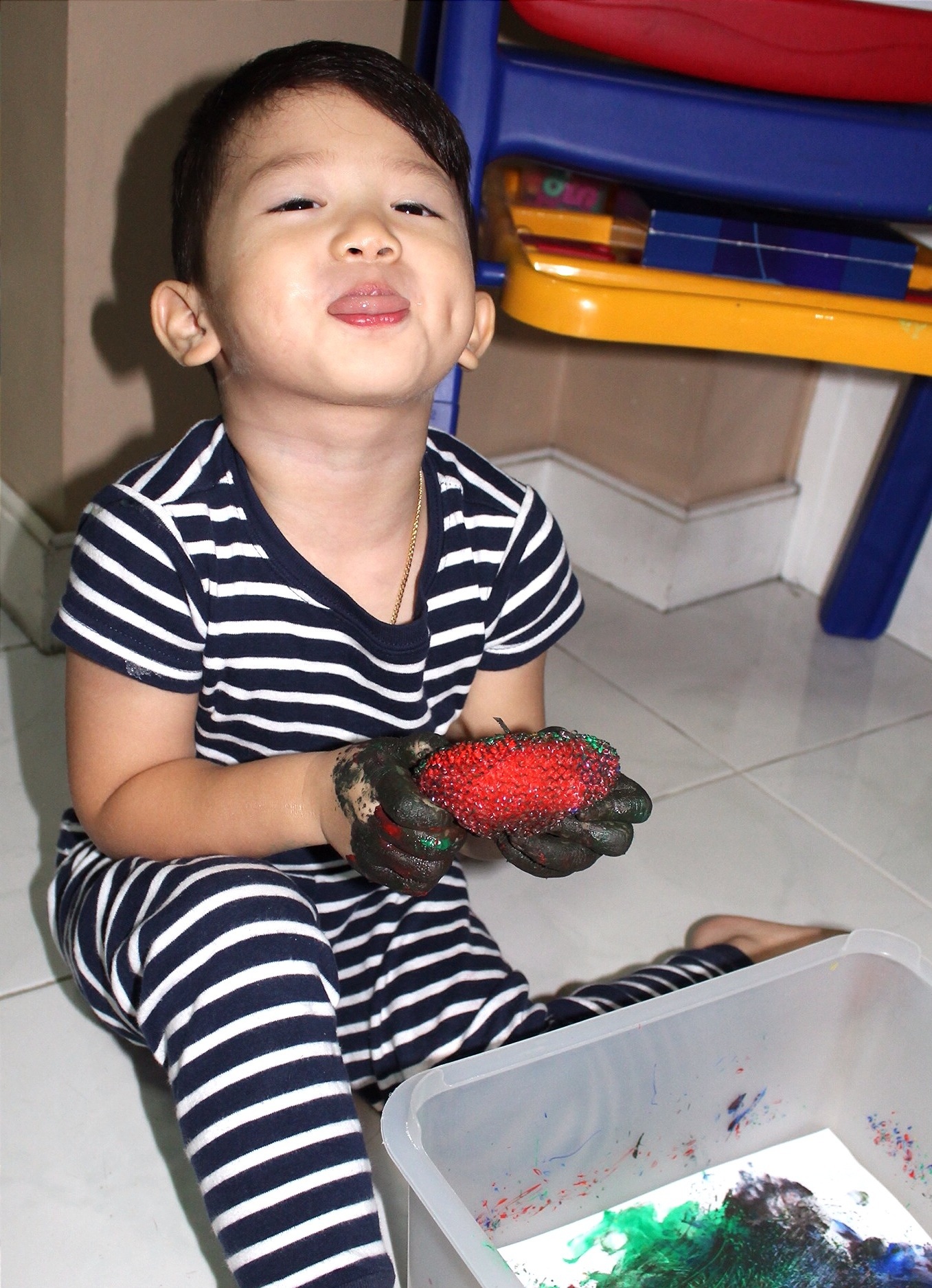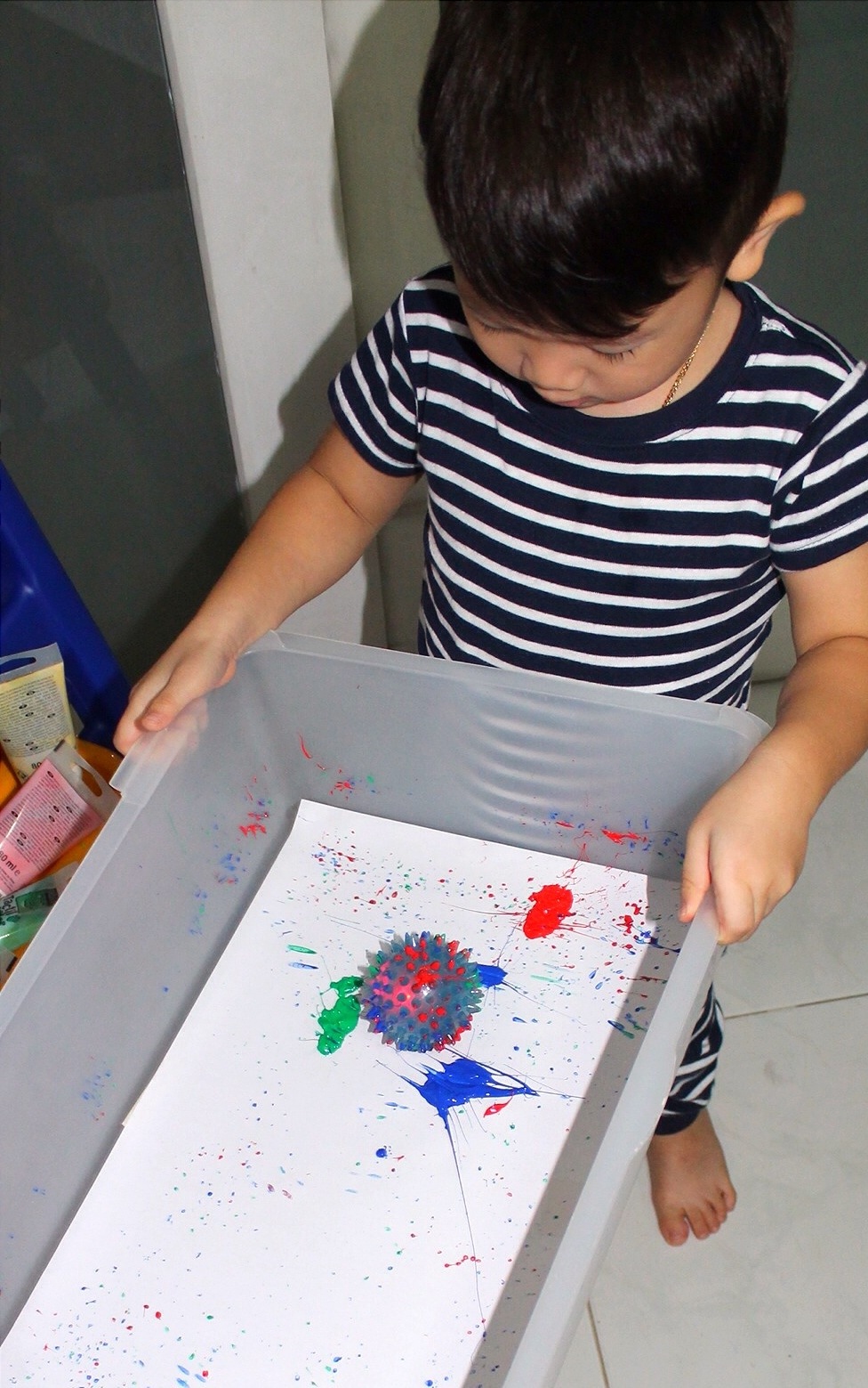 I let Caleb practice with the ball before putting paint on it. Just to be sure that he wont drop it on the floor.
