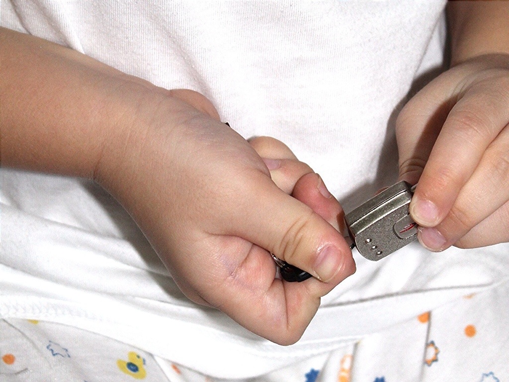 After trying them one by one, he was able to open the lock.
