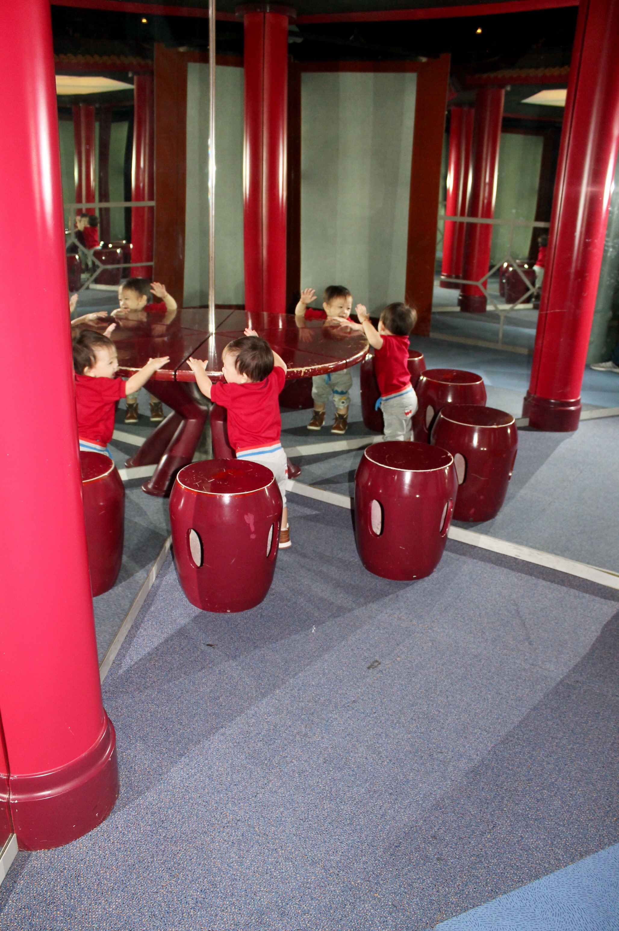 He loved the mirror maze. Five Teos! God help us! Hahaha😂