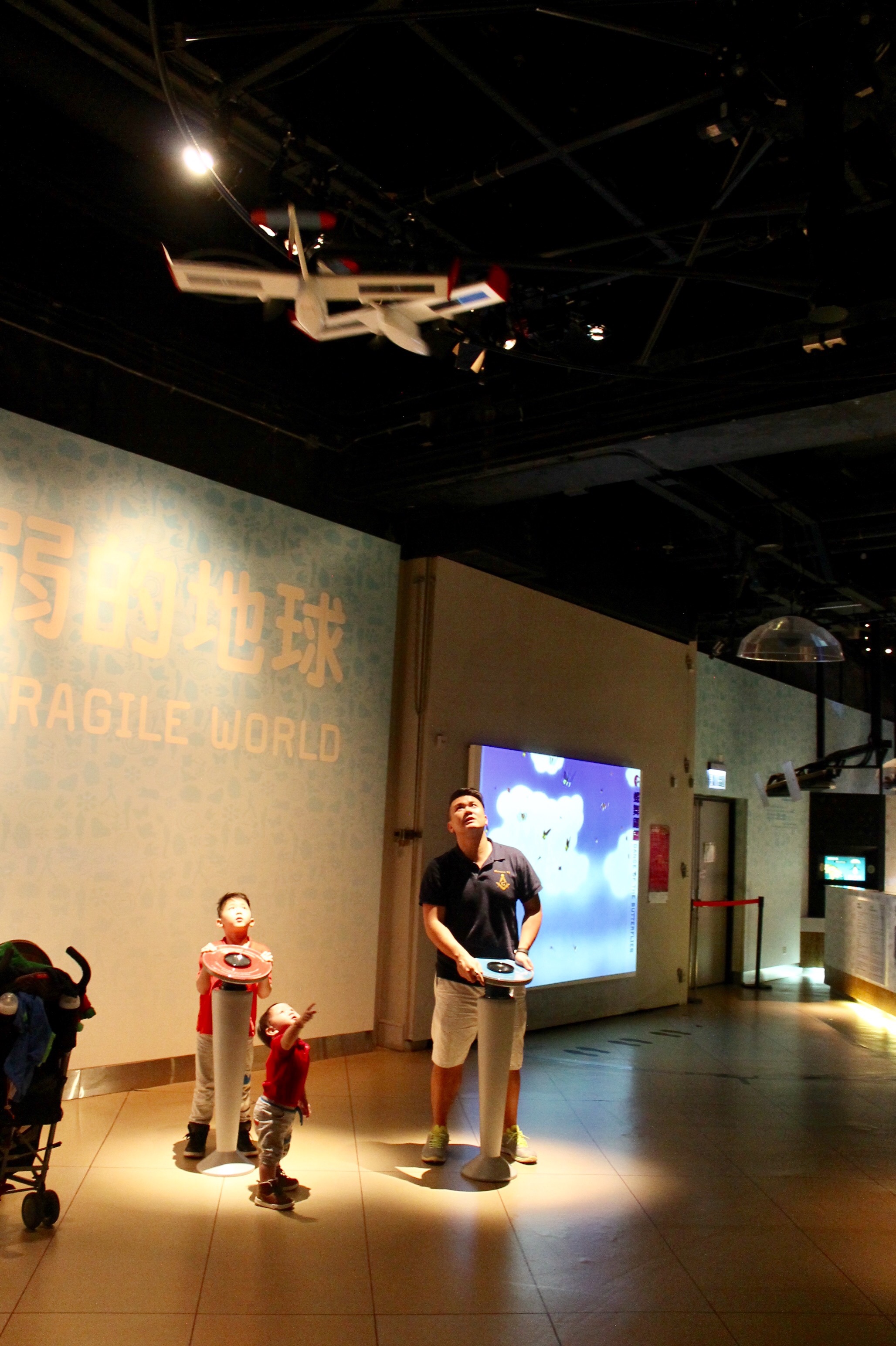 Our favorite exhibit was the solar powered planes. You use a mirror to reflect light onto the planes’ solar panelled wings to make them move. How cool is that!?! Boys will be boys. Needless to say, we spent a lot of time here.