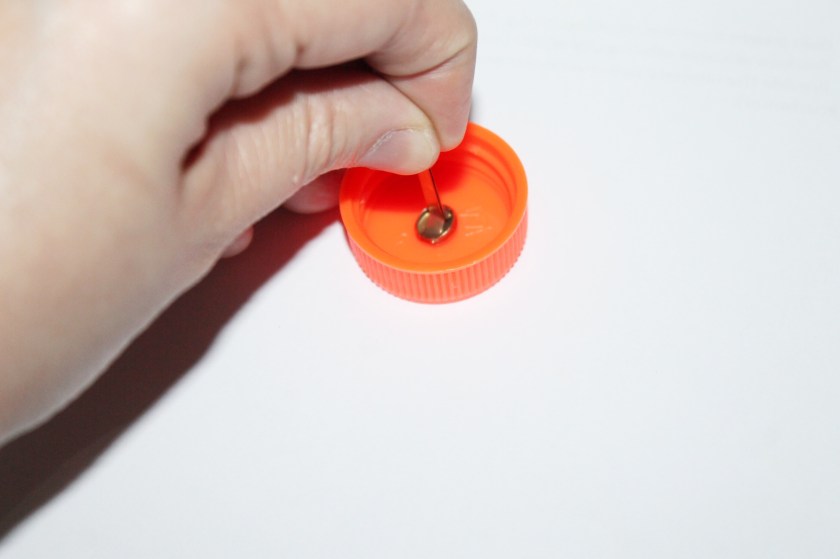 Now, make the knobs using plastic bottle caps and paper Fasteners.