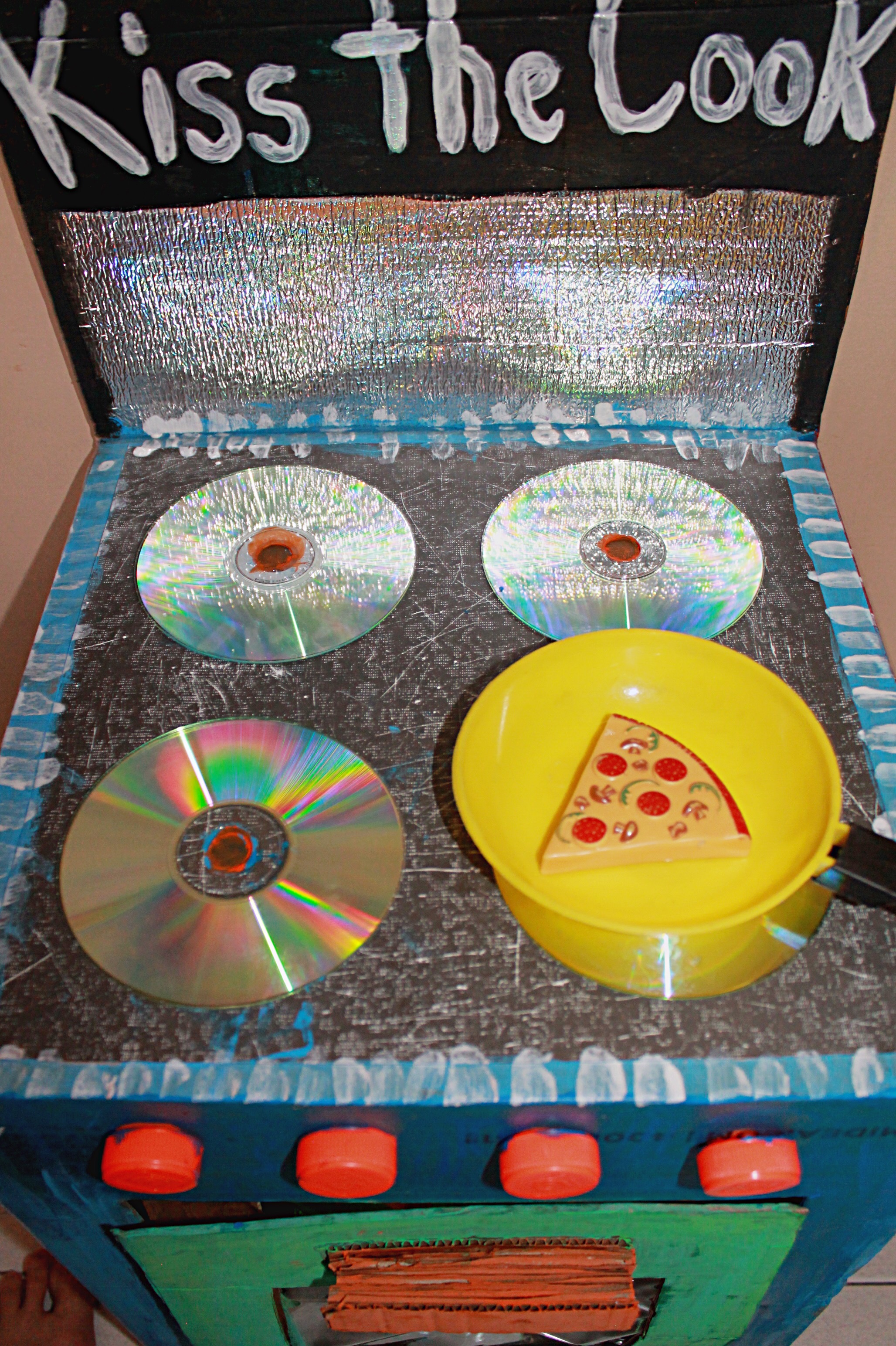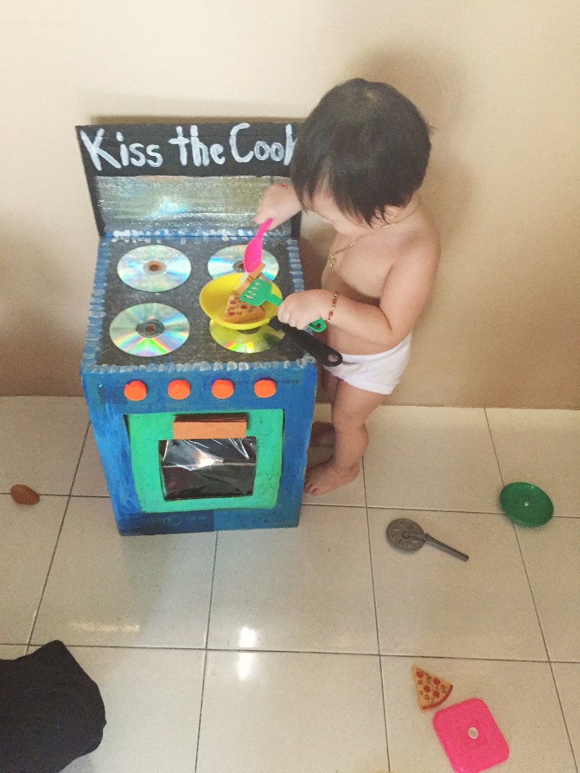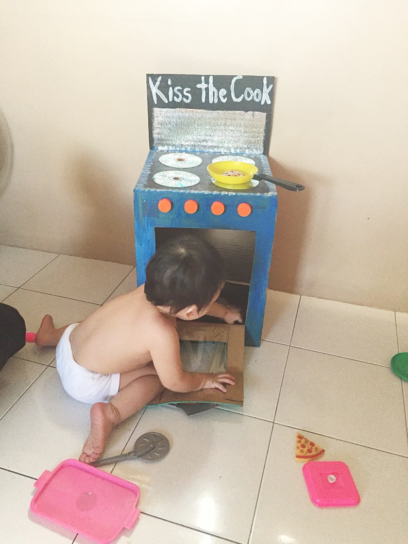 I didn’t want to throw the box without using it first so I decided to transform it into a toy oven for my boys!