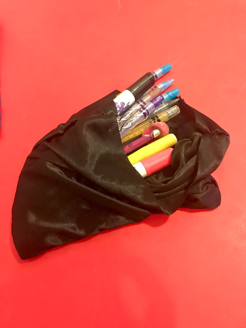 1. Black fabric from my ever growing bag of cut up scrap fabric (from my sewing projects).