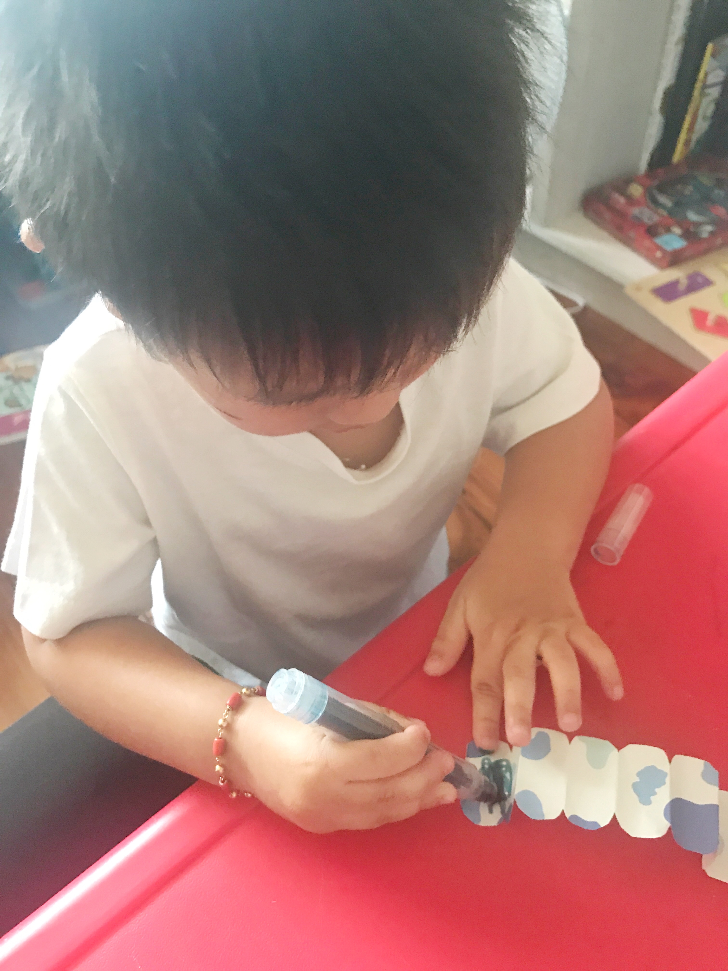 Step 12: Aim for the dot with your straw and blow slowly to make your worm crawl.
