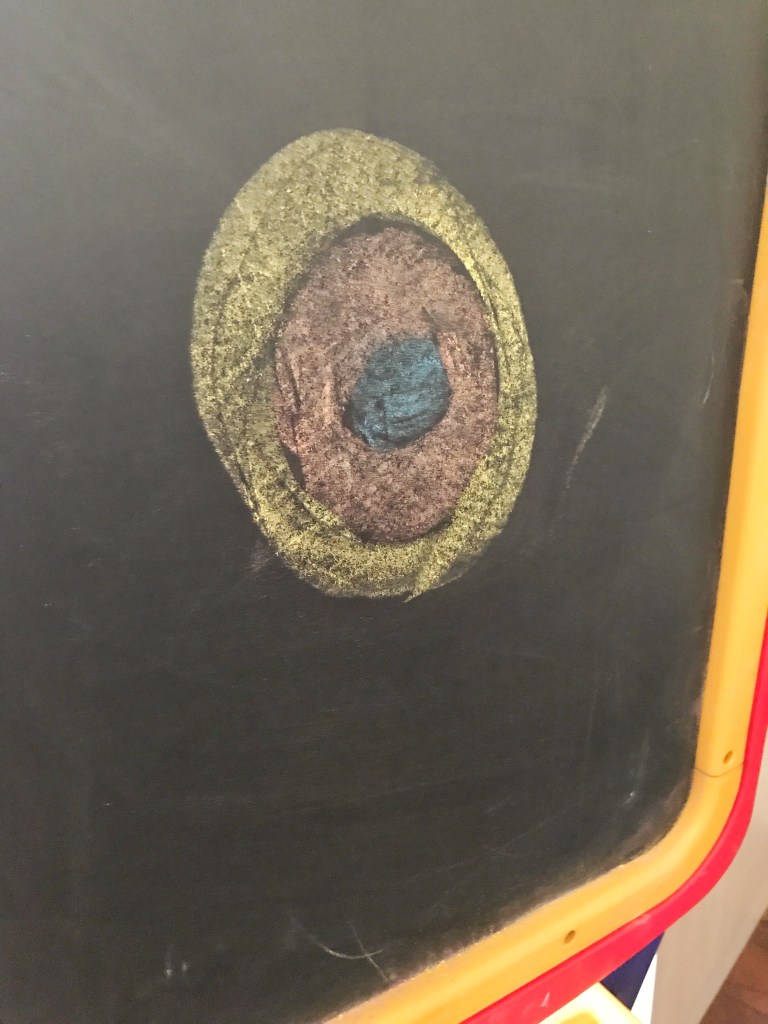 I showed the boys how to make concentric circles. Reminding them to blend in the colors well.