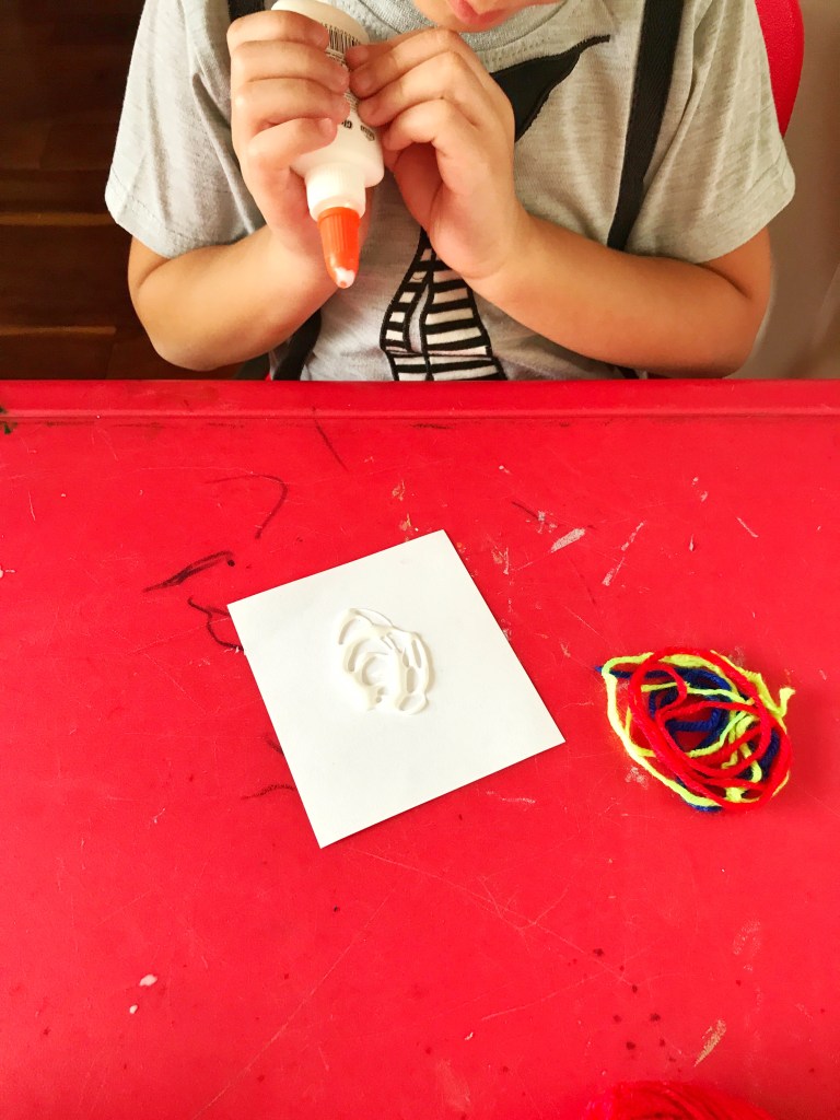 One put glue all over the paper and made circles with the yarn.