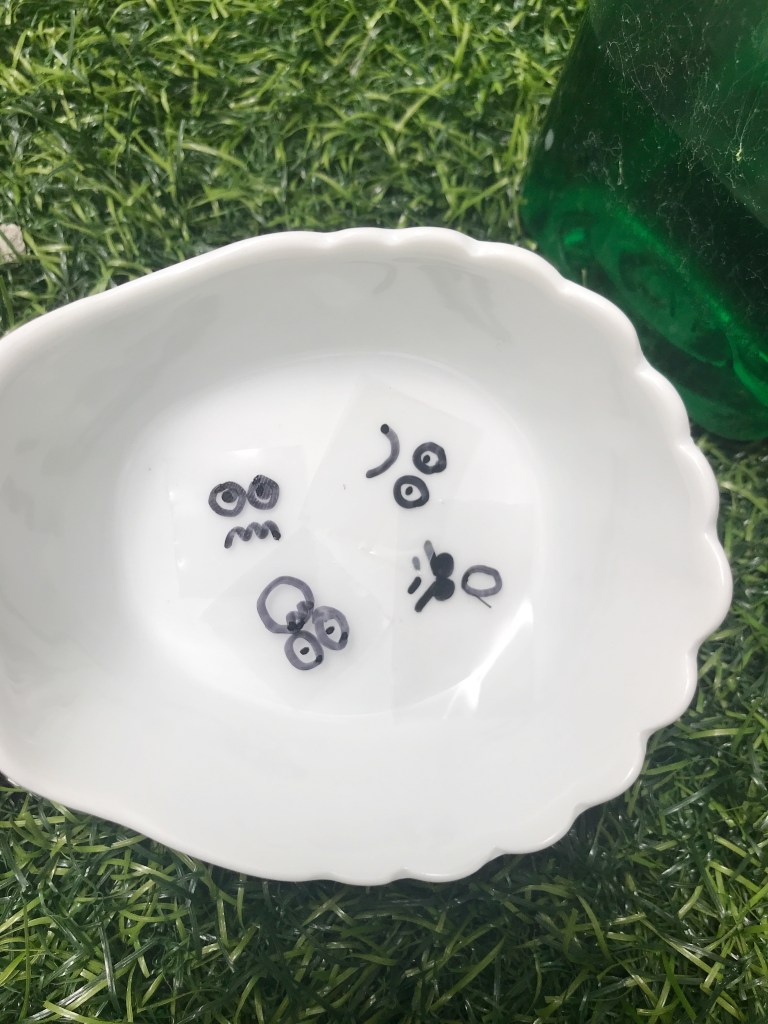 Little germ faces which I drew on leftover clear plastic with a black marker