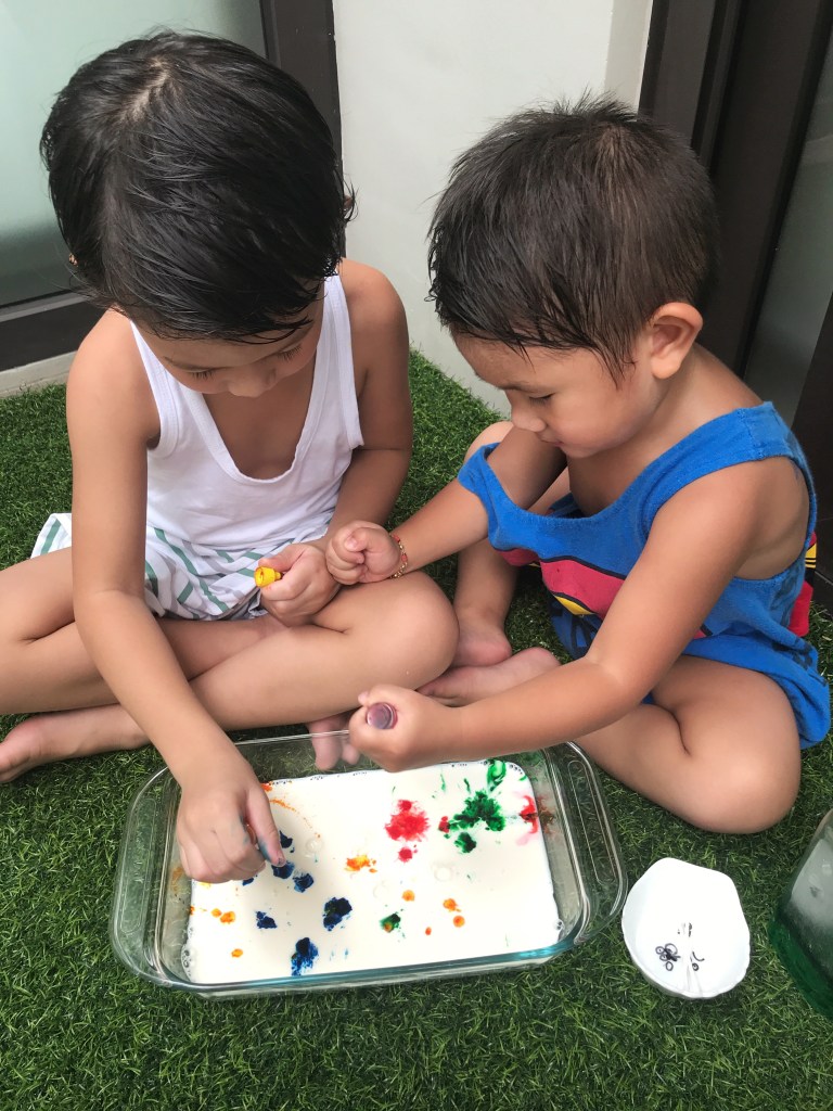 With the COVID-19 pandemic in full swing, this was a simple, fun, and colorful experiment to show the boys the importance of washing their hands.