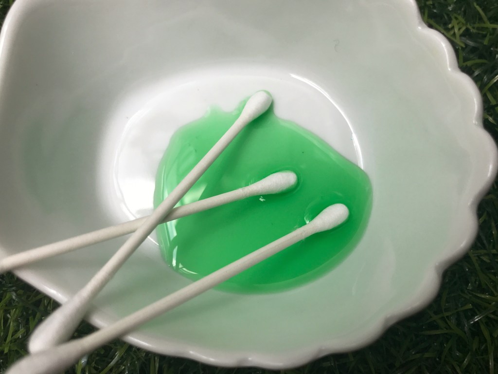 Dip the cotton swabs into the milk mixture and watch colorful germs move away from the soapy cotton swabs.