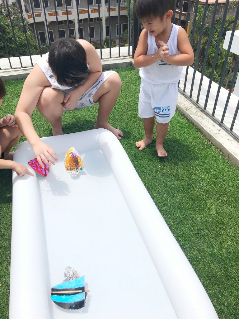 8. Test their designs by racing and floating them! Guess whose sailboat was the best?