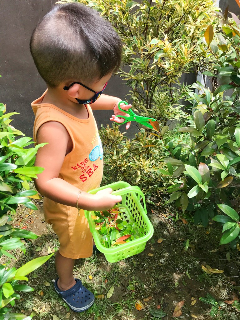 3. Collect leaves by cutting from the stem. The boys enjoyed harvesting and cutting leaves.