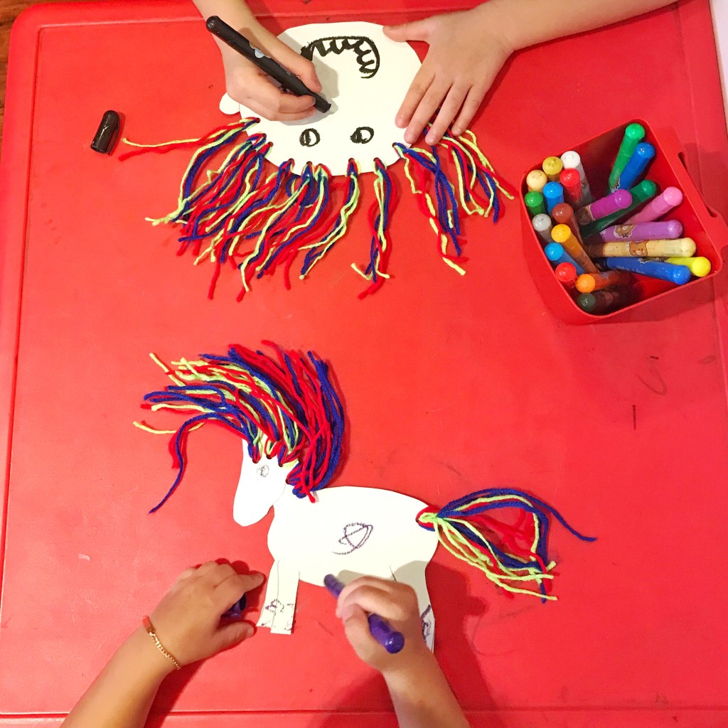 1. Draw images on the board paper. Luc wanted a horse and Teo wanted a boy. I just used a pencil for this.
