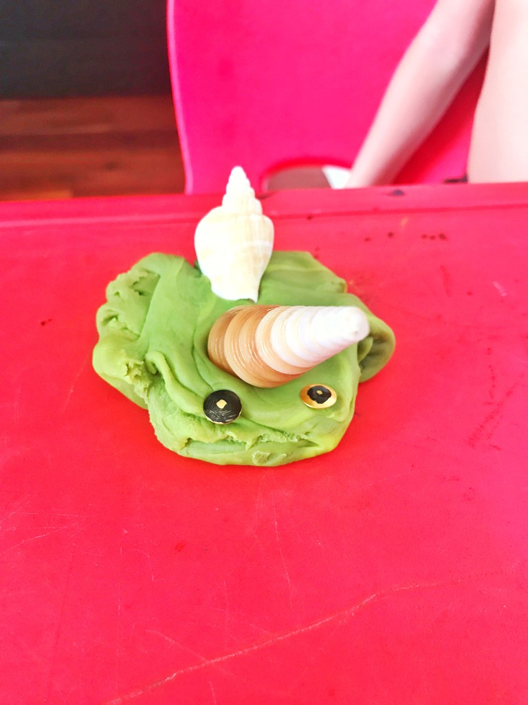 The boys made proper looking snails then started to make interesting looking ones. Here are some of their creations.👇🏻👇🏻👇🏻