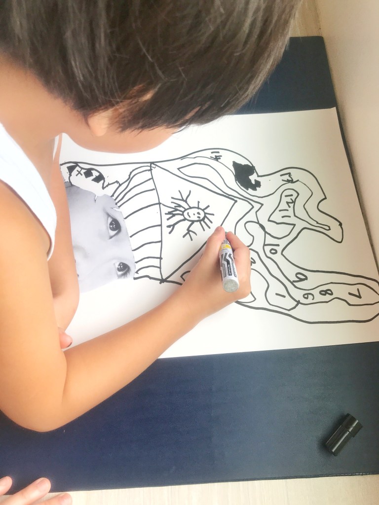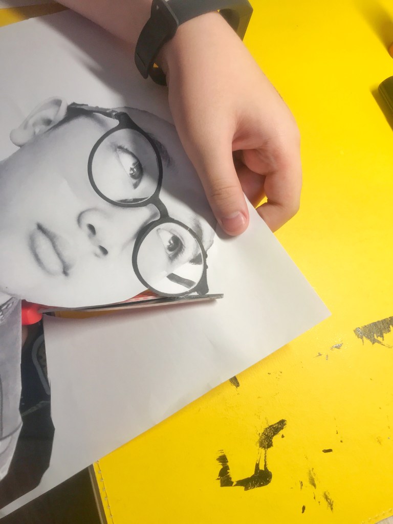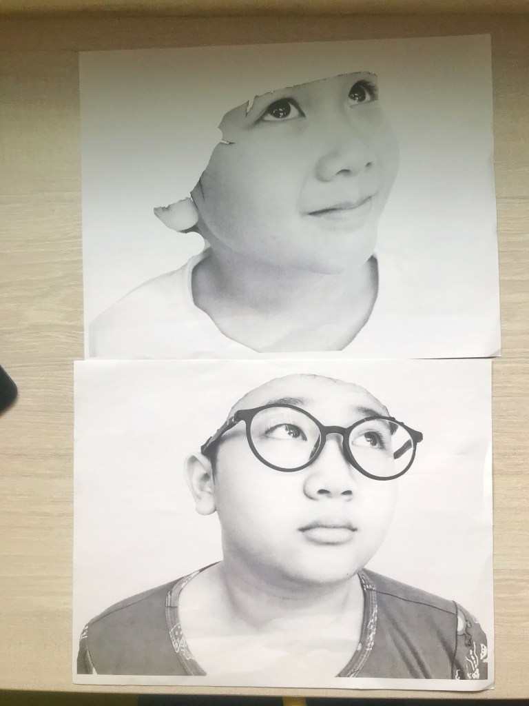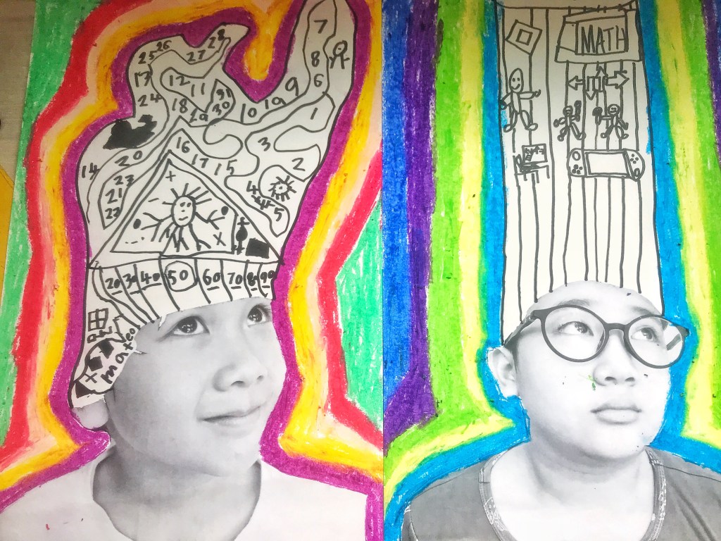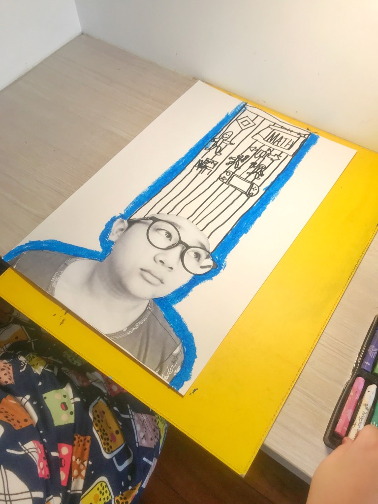 3. Use a black marker to draw the hair and fill in the hair with drawing and doodles. I told the boys to put in what’s inside their minds. Things, people, or events that they were thinking about.