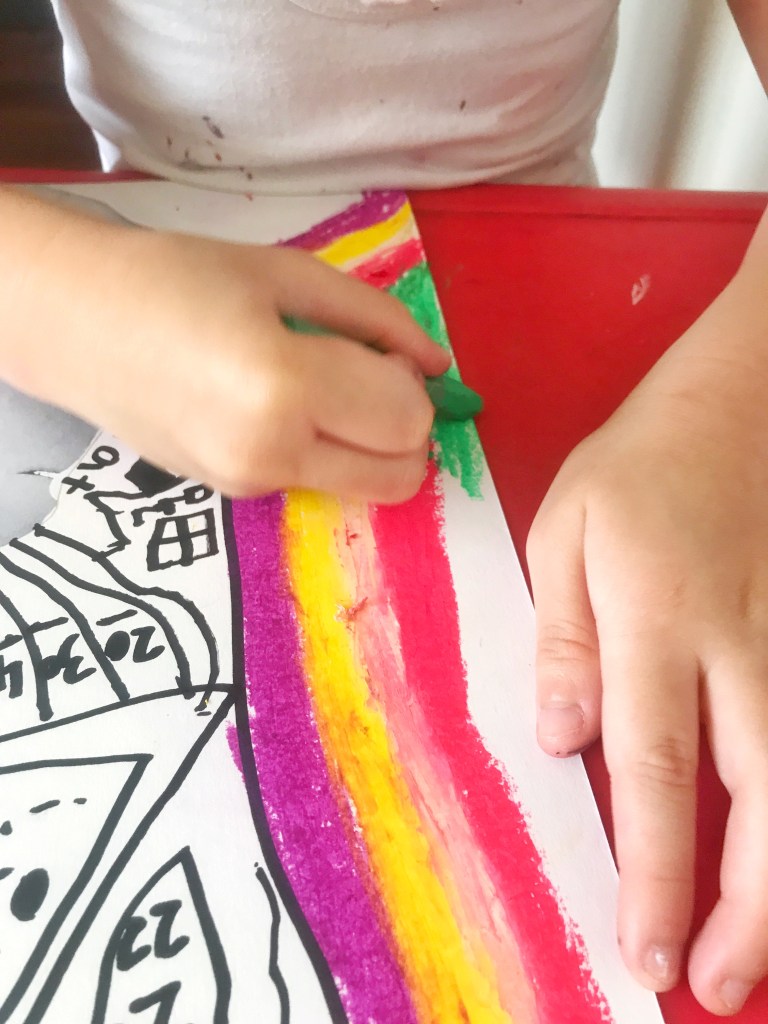5. Repeat this with different colors until all the white areas around the picture are covered.
